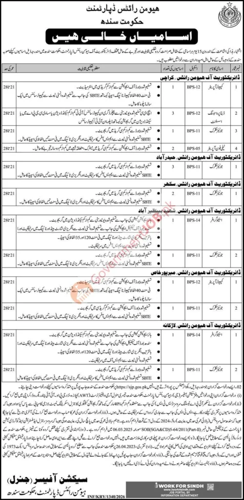 Disclaimer: This article is compiled from the official advertisement of the Human Rights Department, Government of Sindh. While every effort is made to ensure accuracy, always verify details directly on the official Sindh Job Portal (sjp.gos.pk) before submitting your application. Government policies and deadlines are subject to change.