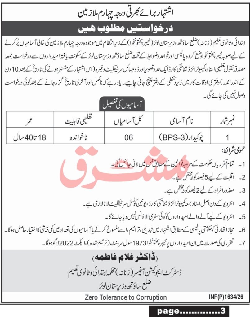 The deadline is approaching fast. If you meet the criteria, do not delay. Prepare your documents, follow the instructions in the Mashriq Newspaper advertisement, and submit your application immediately. Serving as a Chowkidar in ESED is not just a job; it is a role that safeguards the future of education in your community. Best of luck to all applicants!