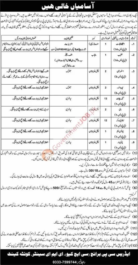 Pakistan Army EME Center Quetta Cantt Jobs 2026 include positions ranging from BPS-14 to BPS-1, covering clerical, religious, store management, teaching, and support roles. Because these jobs combine administrative structure with government service benefits, they often attract large numbers of applicants, especially for clerical and basic support posts.