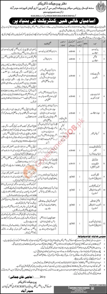 If you have been waiting for a meaningful government-backed role that goes beyond routine desk work, the Sindh Coastal Resilience Project (SCRSP) hiring round for 2026 is worth your full attention. The Project Director Office in Hyderabad is recruiting specialists, engineers, safeguard experts, and short-term consultants to staff a programme funded jointly by the Asian Development Bank (ADB) and the Green Climate Fund (GCF) – two of the most credible multilateral financing institutions operating in Pakistan today.
